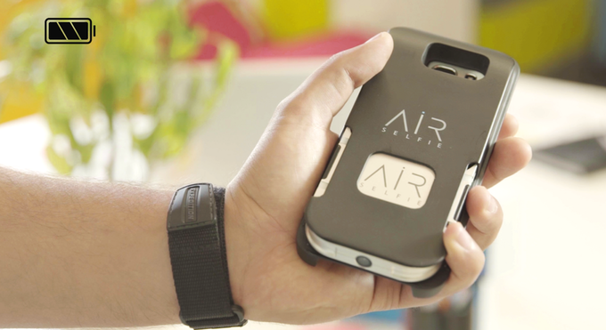 Take AirSelfie out of its cover and launch it from your phone using the AirSelfie app available for iOS and Android.